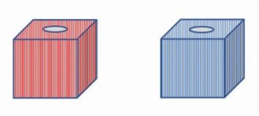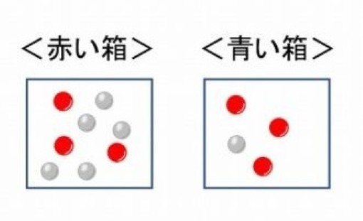 赤い箱と青い箱、赤い玉はどっちが多いかな?