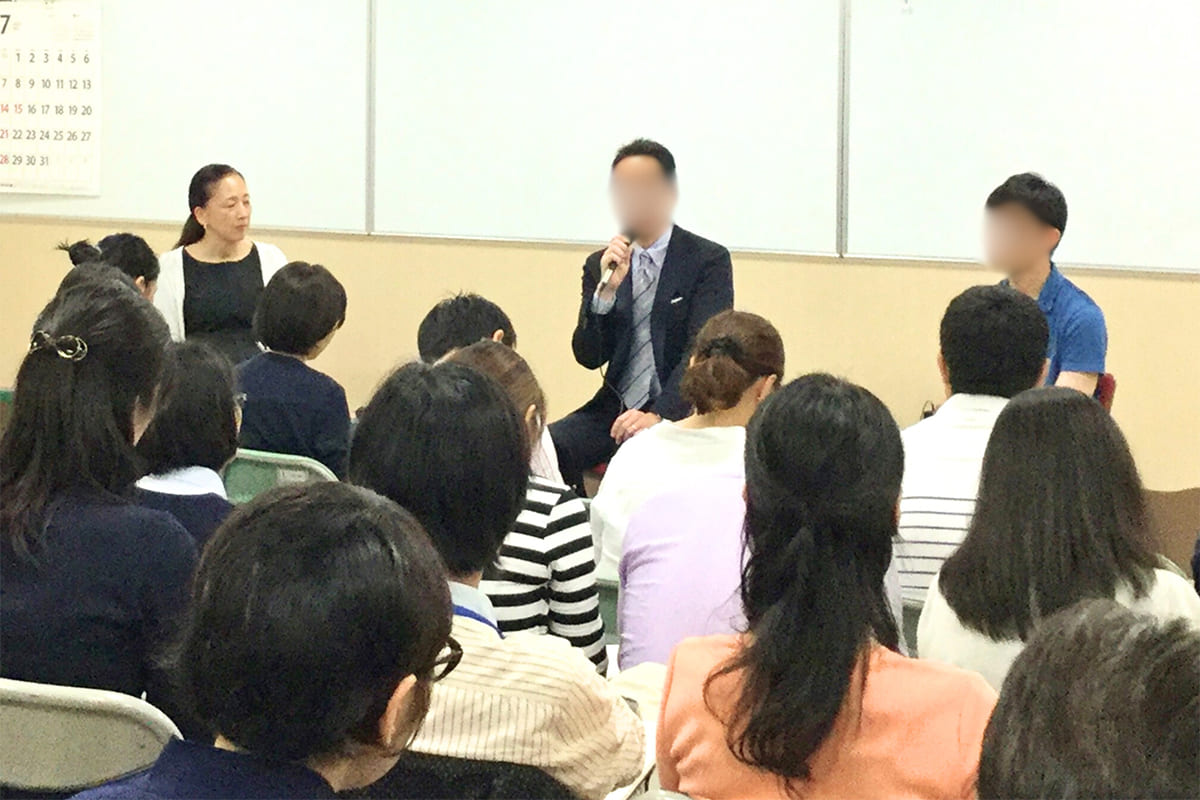 理英会から卒業したご家庭の体験談を聞く会です。志望校の選び方、お子さまの学習方法、ご家庭で工夫したこと、願書や面接についての生のお声やアドバイスに後輩となるご家庭は励まされ、笑顔の合格への気持ちを新たにしていきます。
