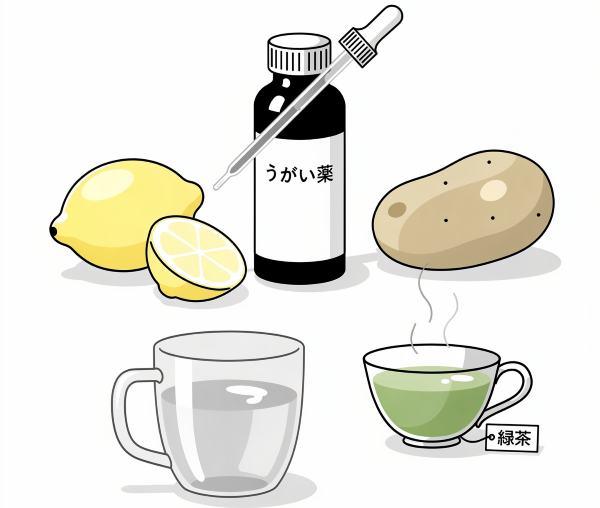 レモン汁、じゃがいもをすりおろして出てくる汁、緑茶、など。