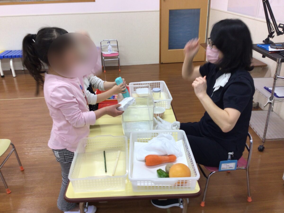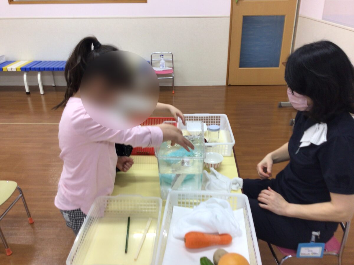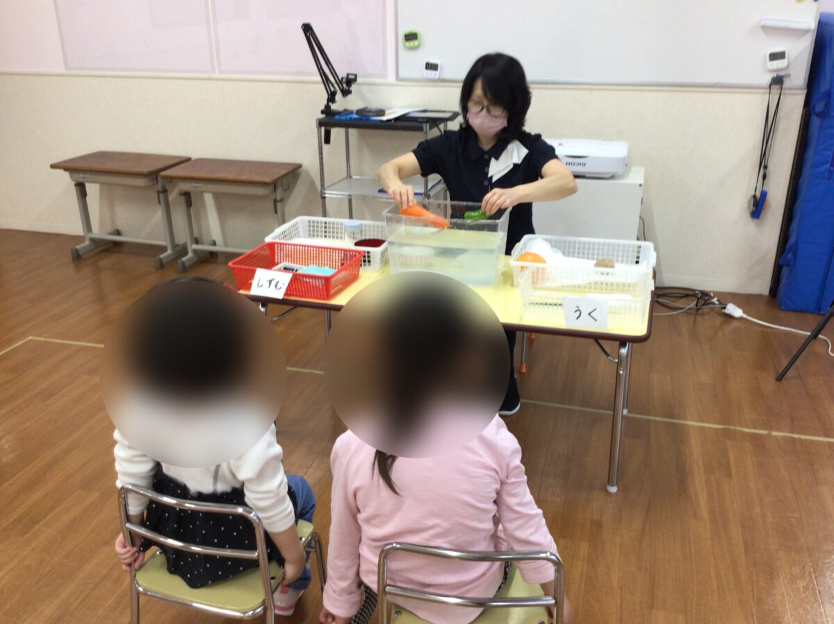 新年中クラスでは浮くもの沈むものの授業を行いました。
