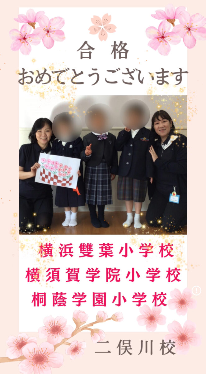 横浜雙葉小学校・横須賀学院小学校・桐蔭学園小学校に合格されたお友達が遊びに来てくれました。制服姿がとても似合っていますね!これからもずっと応援しています!また遊びに来てくださいね!