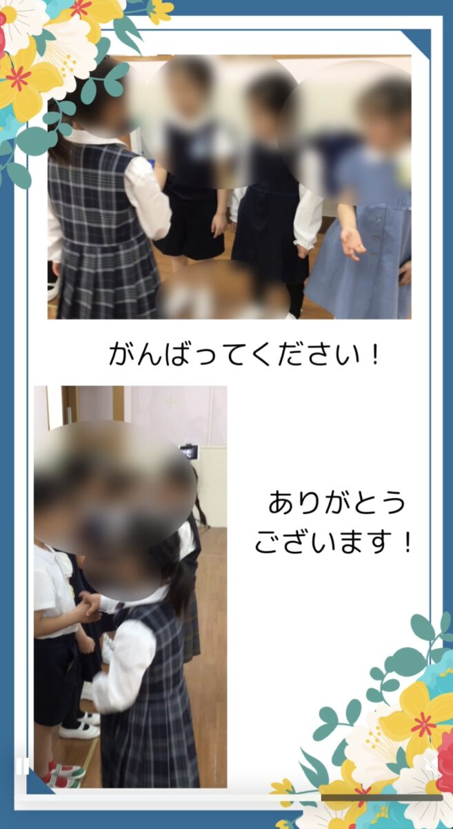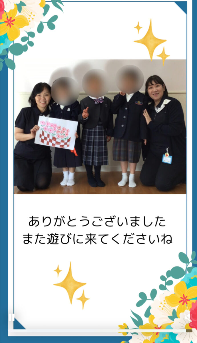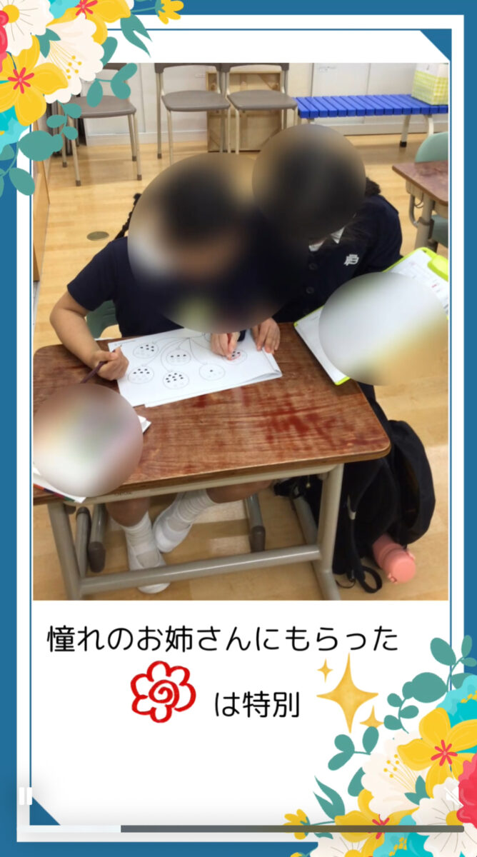 今年合格されたお姉さんが遊びに来てくれました。素敵な制服姿を目の前に、みんな目がキラキラ