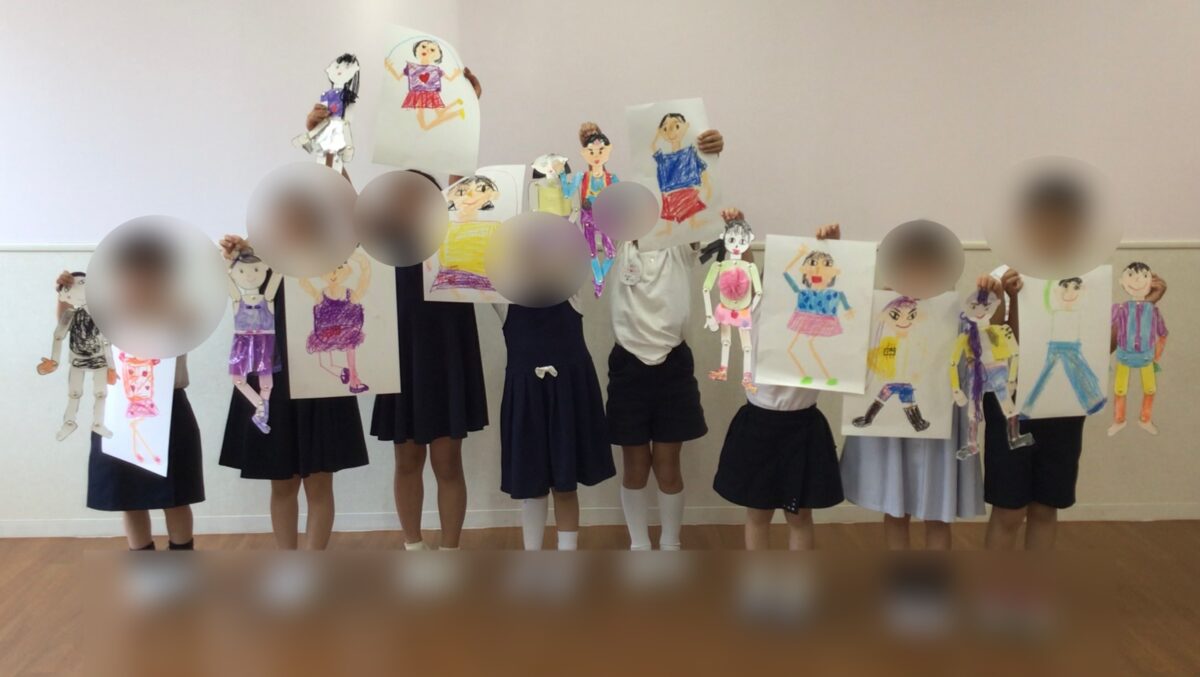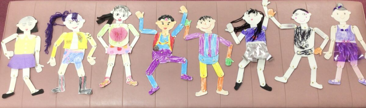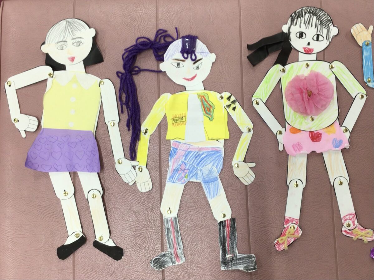 自分の好き洋服を着せてお気に入りのポーズさん。よく見て上手に描けました