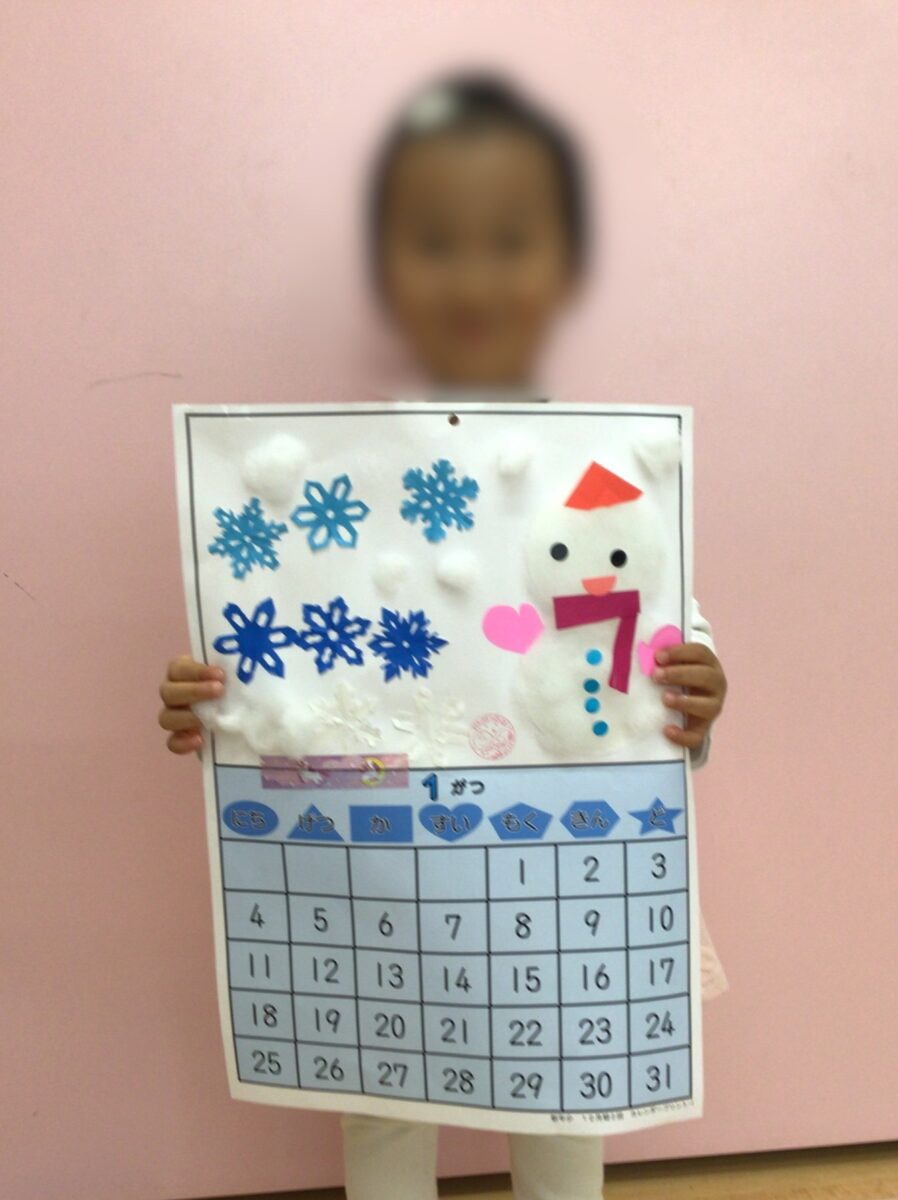 新年少コースのお友達が1月のカレンダーを作ってきてくださいました。