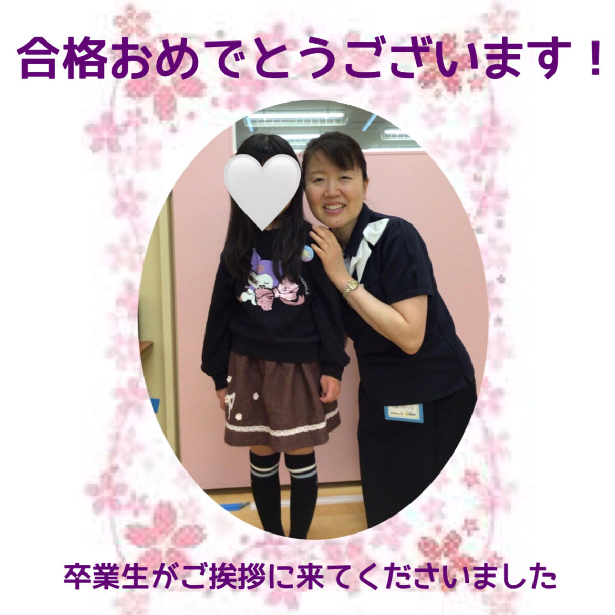 昨秋、私立小学校に合格された卒業生のお姉さんがご挨拶に来てくださいました。