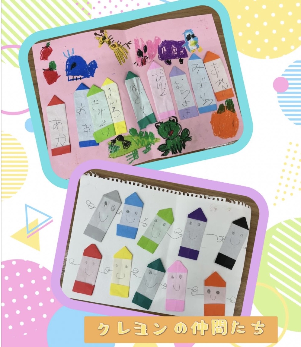 可愛らしい顔を描いたり、イラストを描いてオリジナリティあふれる素敵なクレヨンの仲間を作ってくれました