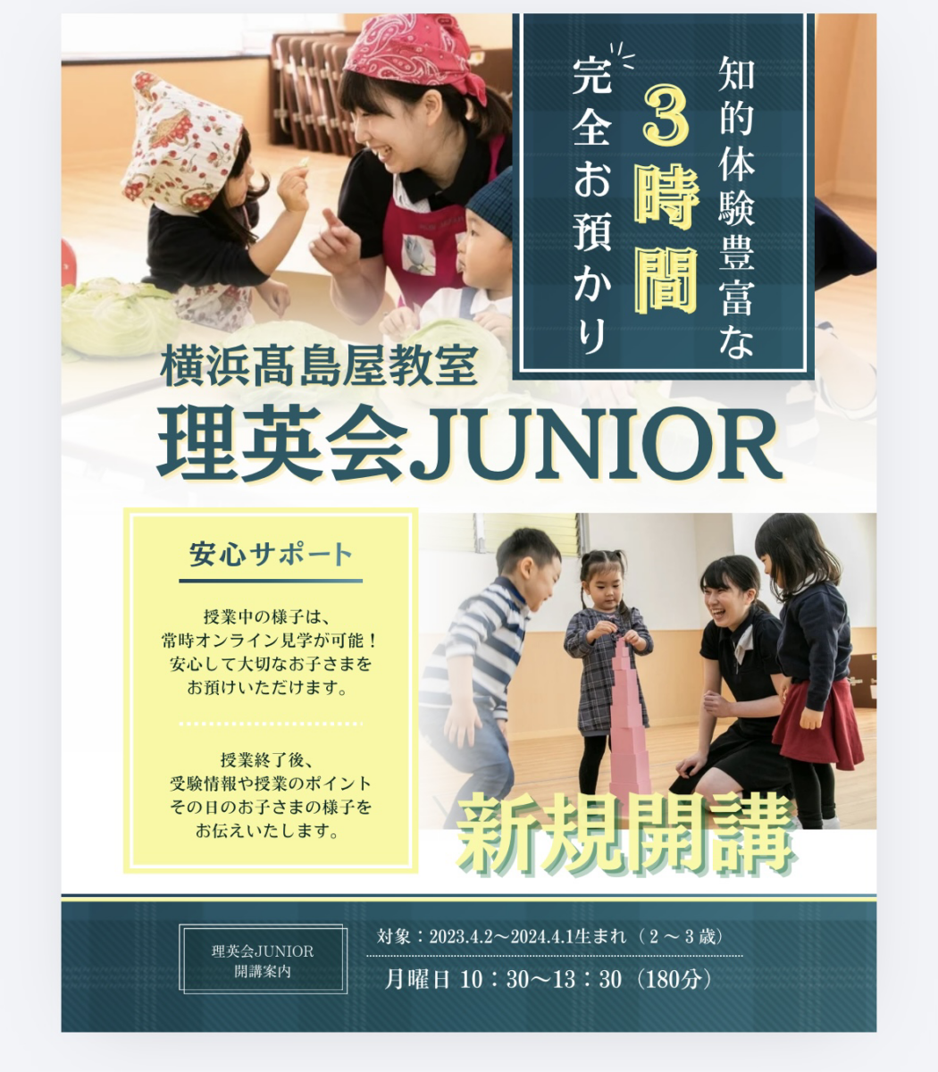 【理英会JUNIORコース】が月曜日(10:30〜13:30)に開講‼︎