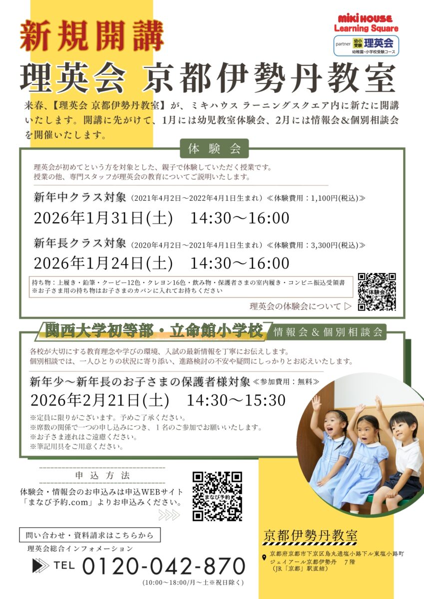 関西大学初等部・立命館小学校 情報会&個別相談会のご案内[京都伊勢丹教室]
