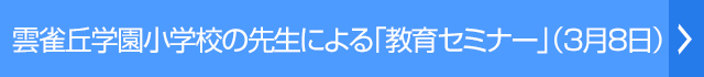 2026年01月26日 雲雀丘学園小学校の先生による「教育セミナー」実施のお知らせ(3月8日) 小学校の先生から直接お話が聞ける貴重な機会です!親子での来場が可能ですので、ご興味のある方はぜひご参加ください。 ■日時:3月8日(日)11:00~12:00 ※15分前 ... 詳細はこちら