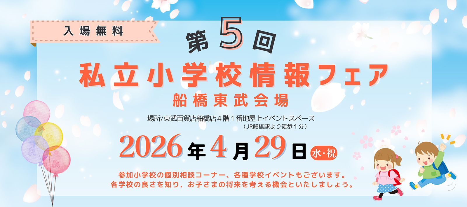 ・お申込みの方は開始 5分前を目途にイベント会場(東武百貨店船橋店5F ミキハウスキッズパル教室)へお集まりください。