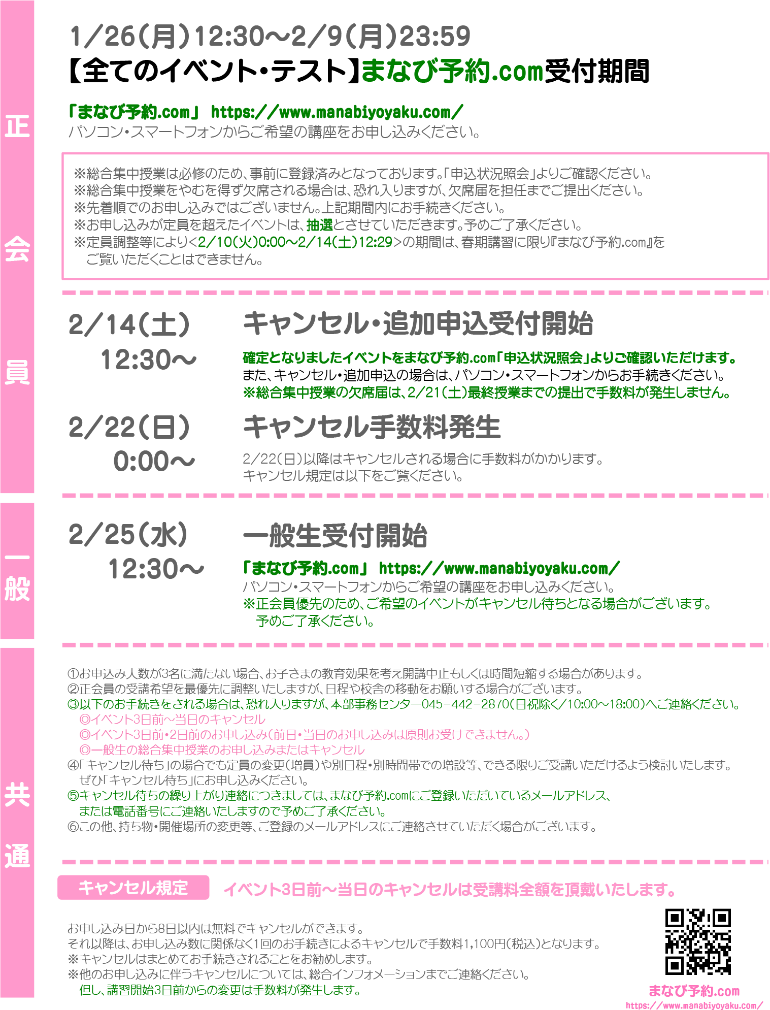 ※理英会の予約専用サイト 学び予約ドットコム よりお申し込みください。申し込み締切日は各開催日の4日前までとなります。