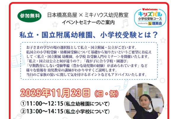 [受験対応1・2歳コース対象]2025幼稚園受験セミナーのご案内(日本橋三越本店教室)