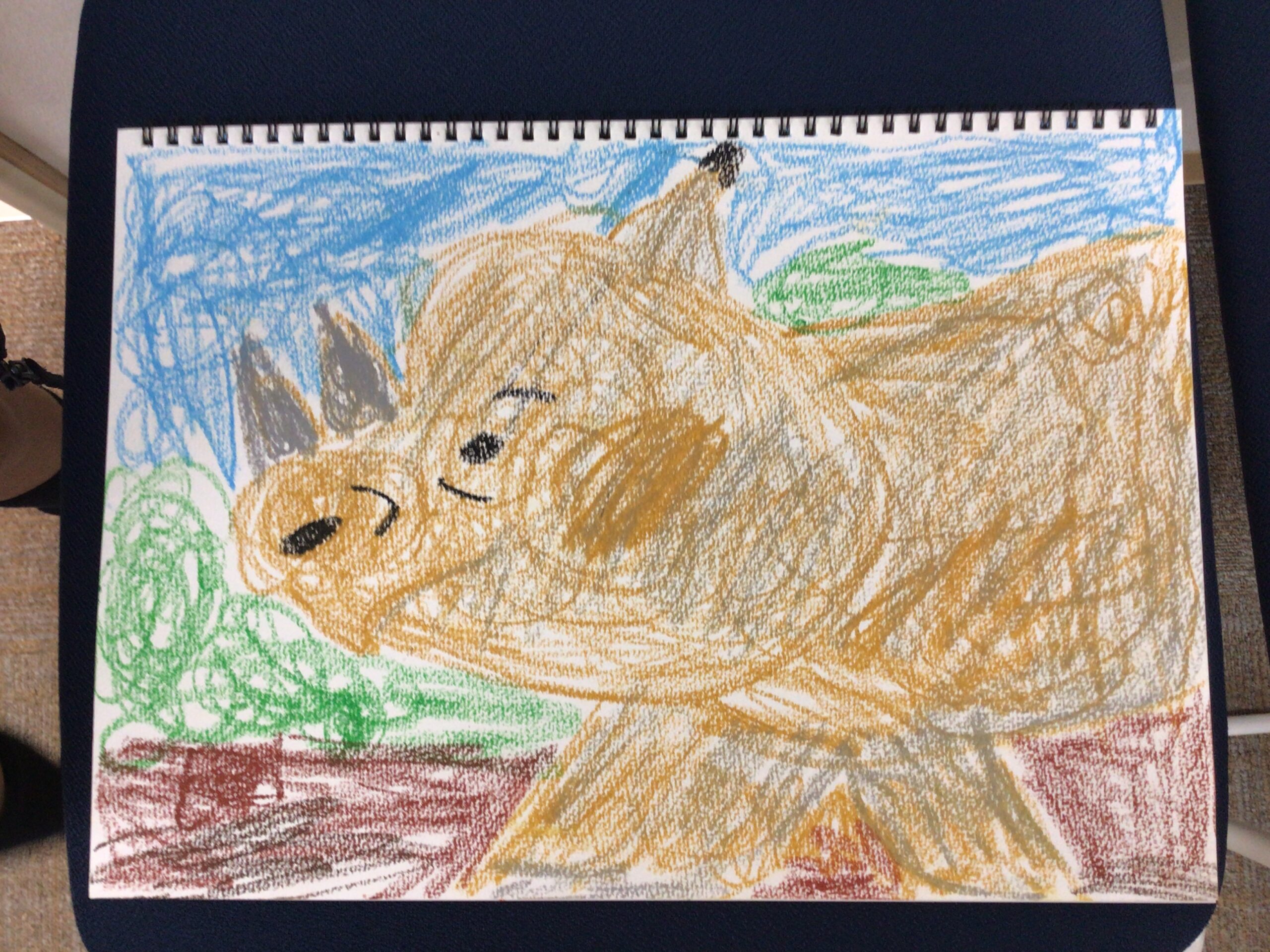 そんな中、一人のお友達がご家庭で描いた絵を持ってきてくれました。テーマはなんと「サイ」。