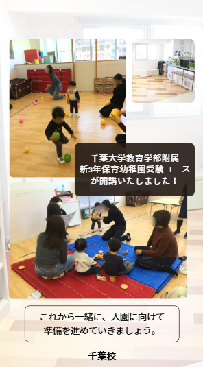 本日より、千葉大学教育学部附属・新3年保育幼稚園受験コースが開講いたしました。
