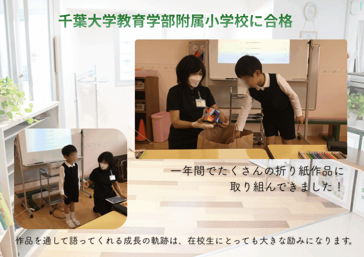 一年間でたくさんの折り紙作品に取り組んできたそうで、その積み重ねが力となり、今回の合格につながりました。