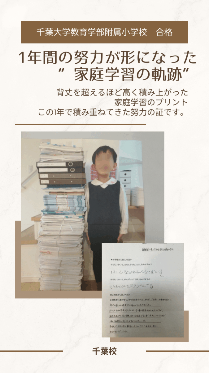 千葉大学教育学部附属小学校 合格をつかんだお兄さんが、この1年で積み重ねてきた努力の証です。