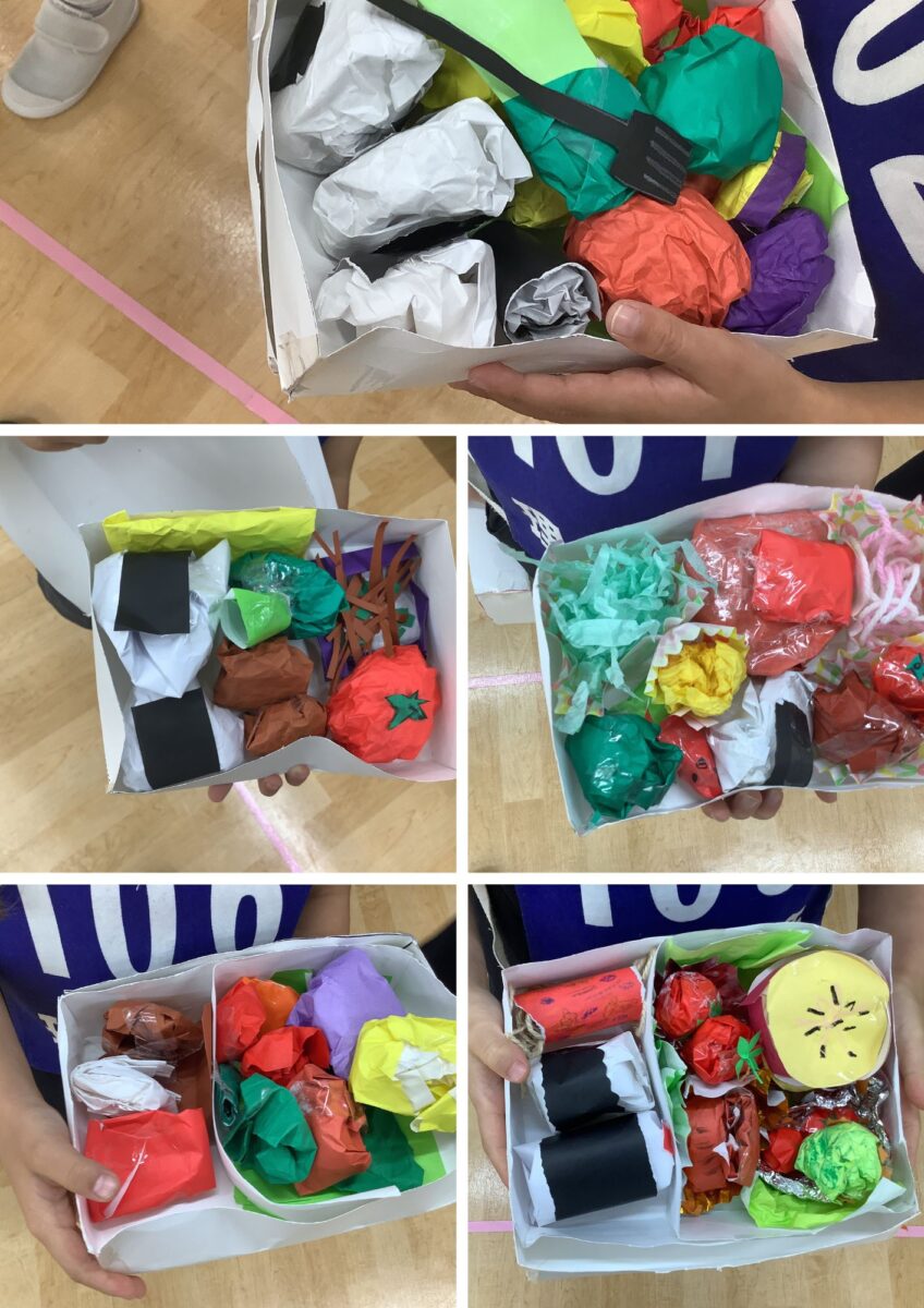 年長さんの制作物をご紹介します。授業ではまず、お弁当箱の本体と蓋を作りました。