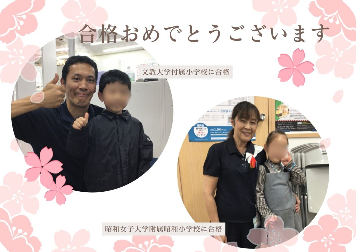 昭和女子大学附属昭和小学校に合格した女の子と、文教大学付属小学校に合格した男の子がご挨拶に来てくれました。