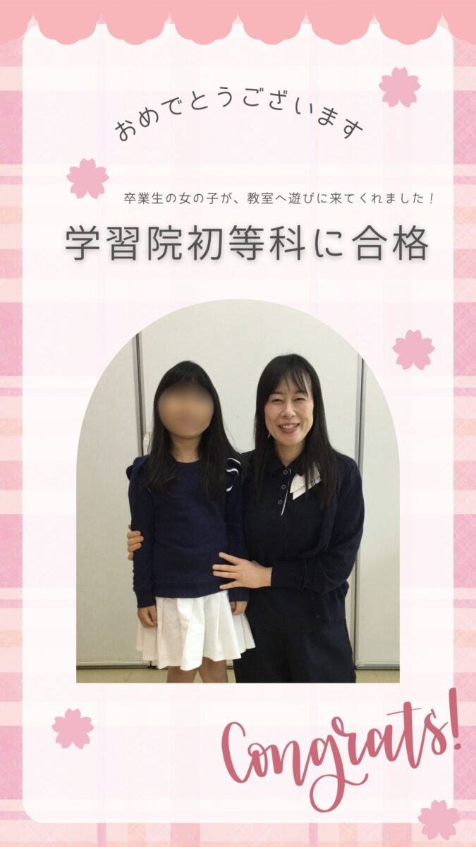この春、学習院初等科に見事合格した卒業生の女の子が、教室へ遊びに来てくれました。