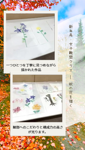 虎ノ門ヒルズ校・新年長の女子難関クラスでは、「秋の花」を描きました。