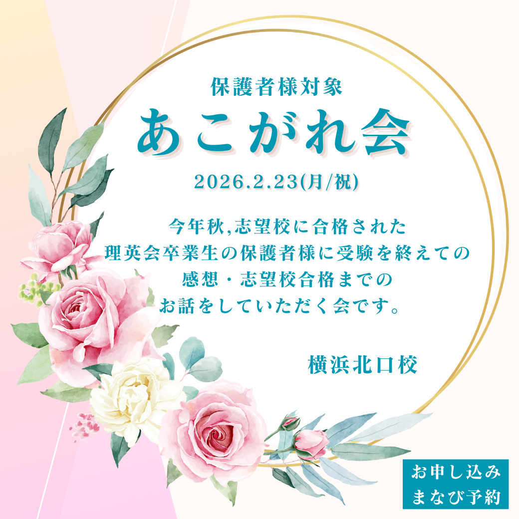| 持ち物 | 室内履き・筆記用具 ※理英会正会員の方は会員カードをお持ちください |