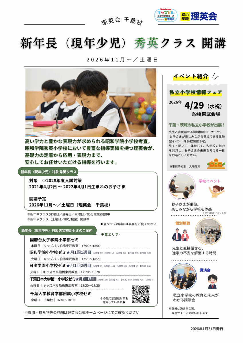 【新年中】2026年11月~「秀英クラス 」開講(千葉校)